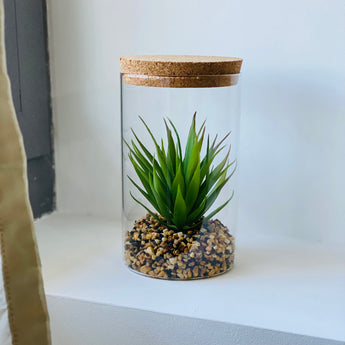 Pianta grassa artificiale in vetro con coperchio in sughero