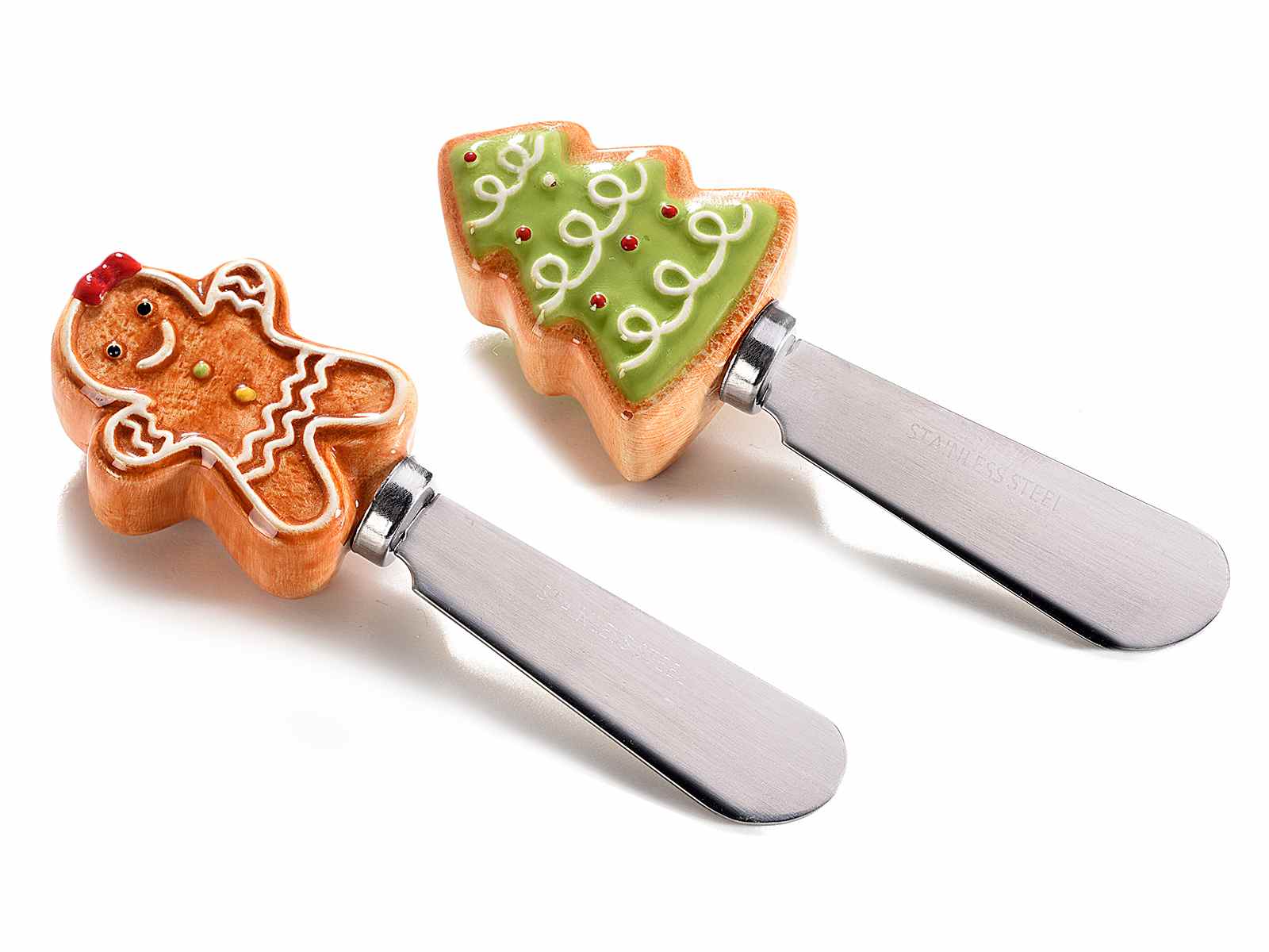 Coltelli natalizi in acciaio con manico in ceramica decori "Biscottini"
